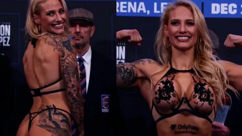 Ebanie Bridges points camera to boobs after weigh-in - Daily Star