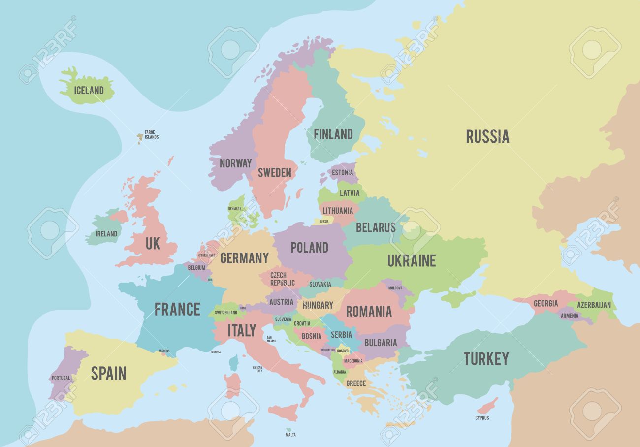 Политическая Карта Европы С Различными Цветами Для Каждой Страны И Имена На Англ